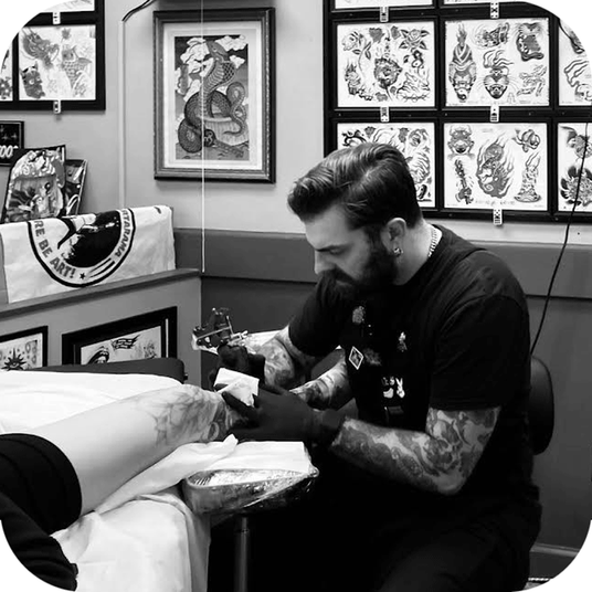 While capable of a variety of styles, Low has begun to focus more heavily on developing his own style within the traditional aesthetic. His favorite tattoos to make are Americana and Japanese-inspired with a particular love for mashups, morphs, and all things weird.
